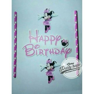 Hiasan Kue Cake Topper Happy Birthday Mickey Minnie . Sumber Gambar : www.bukalapak.com