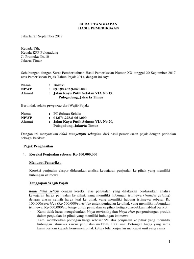 Surat Tanggapan Pajak p Iwan Sumber : www.scribd.com